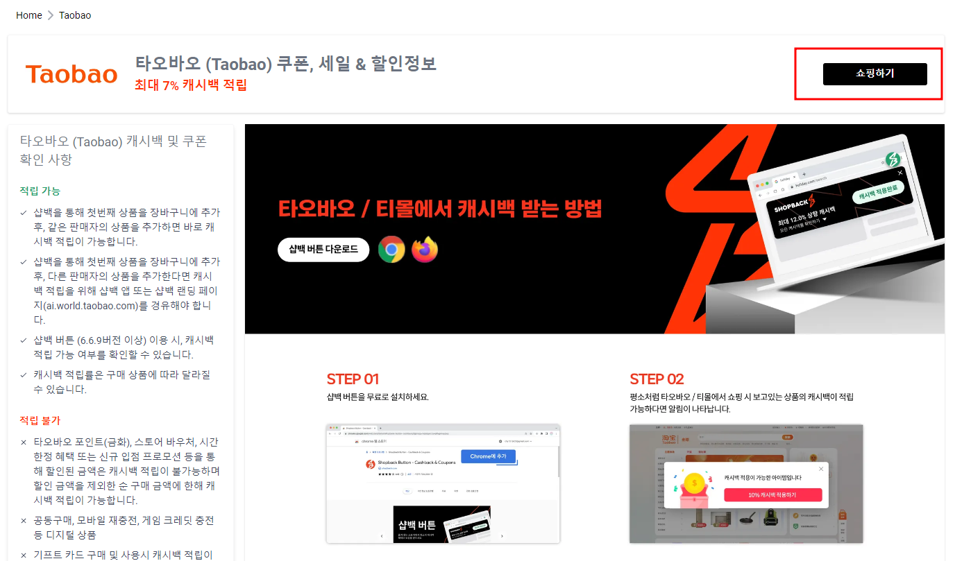종료일 없음인증됨 아시아의 아마존, 지금 타오바오에서 쇼핑을 시작해보세요 최대 7% 캐시백세부사항