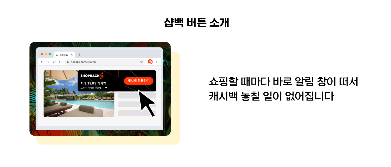 우측 중앙 부분에 SHOPBACK 이라고 노출이 됩니다.