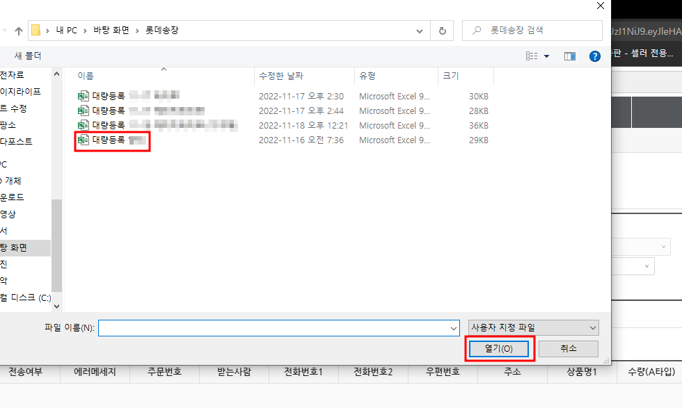 롯데택배 (ALPS) 일괄주문접수 양식 및 엑셀 설정 방법