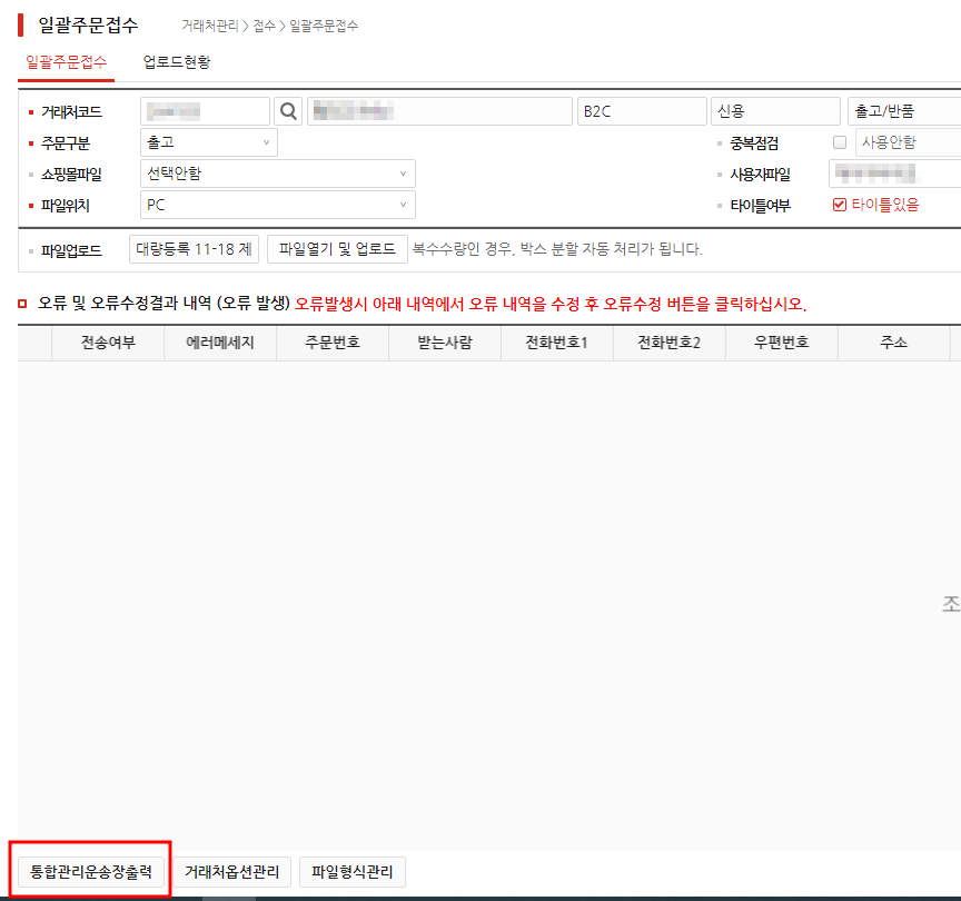 일괄주문접수는 하나하나 등록하실 필요 없이 엑셀로 한번에 많은 양의 송장을 출력하는 방법입니다.
