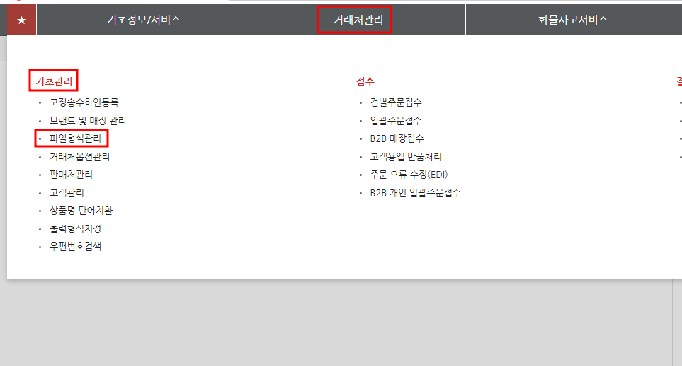 1. 거래처관리 → 기초관리 → 파일형식관리