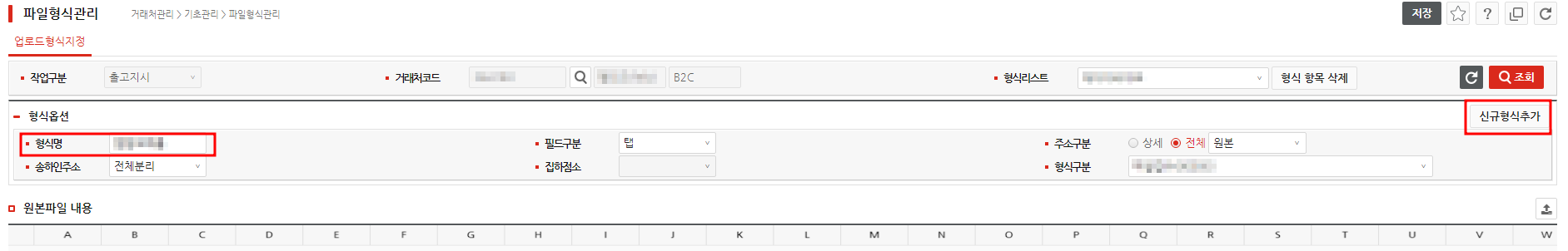 1. 거래처관리 → 기초관리 → 파일형식관리