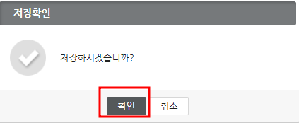 저장을 누르시면 다시한번 저장확인 창이 뜹니다. 이때 다시 확인 버튼을 눌러주세요.
