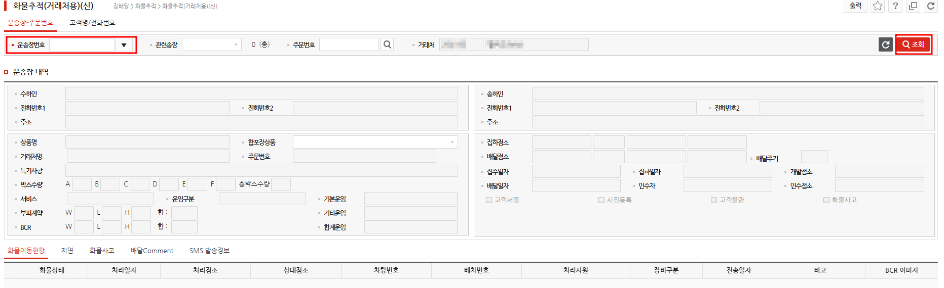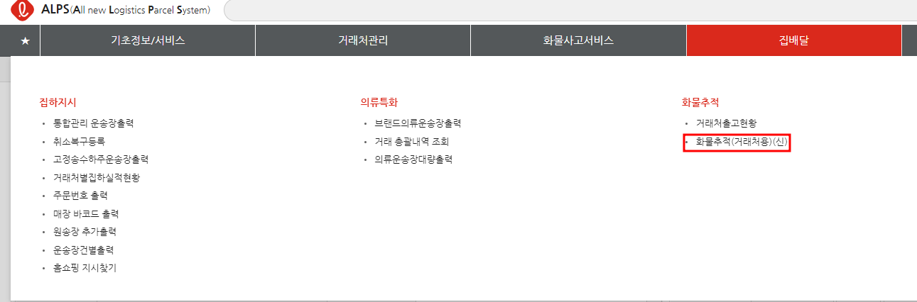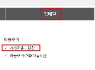 1. 집배달 → 화물추척(거래처용)(신) 클릭