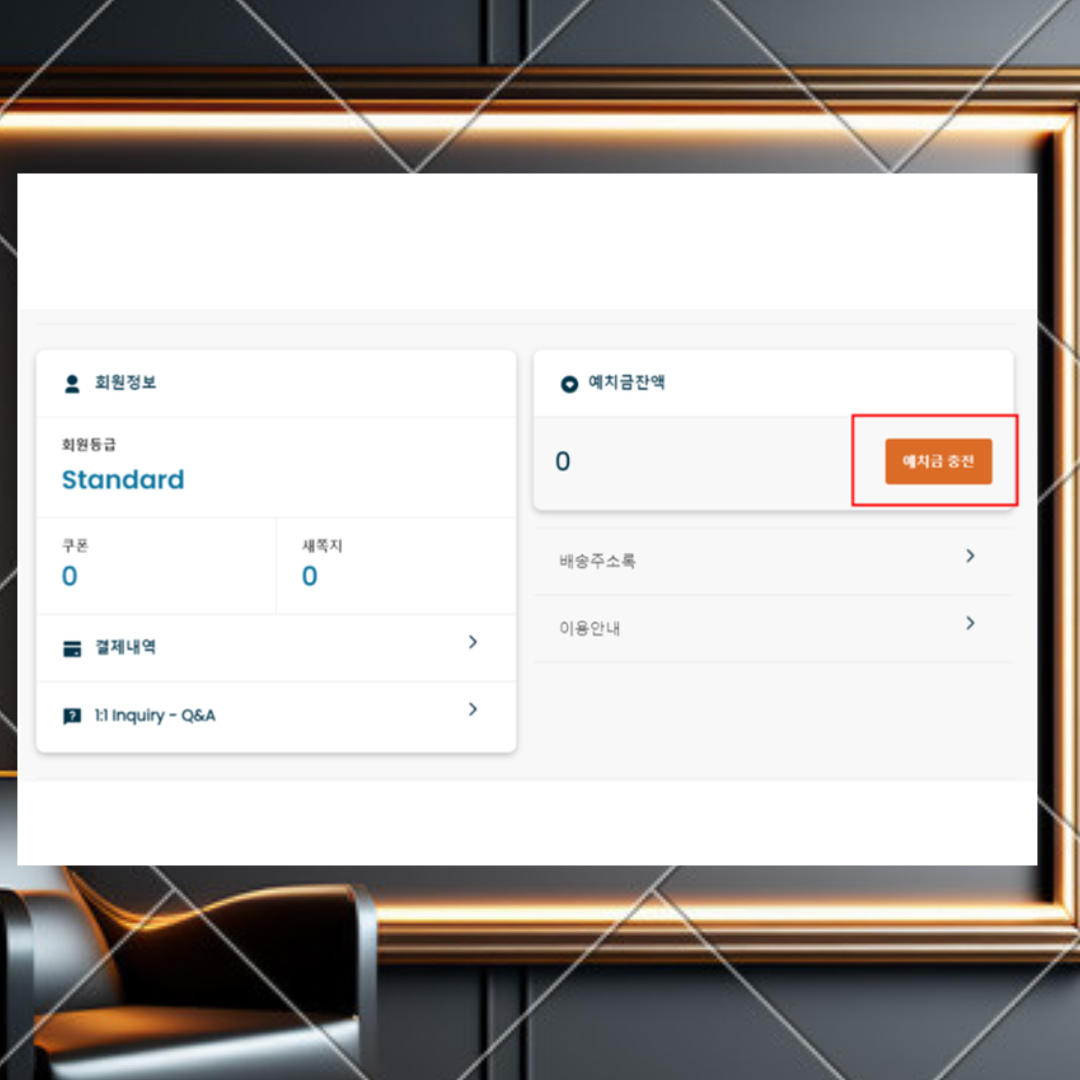 우측 상단의 마이페이지에서 예치금 충전을 클릭합니다.