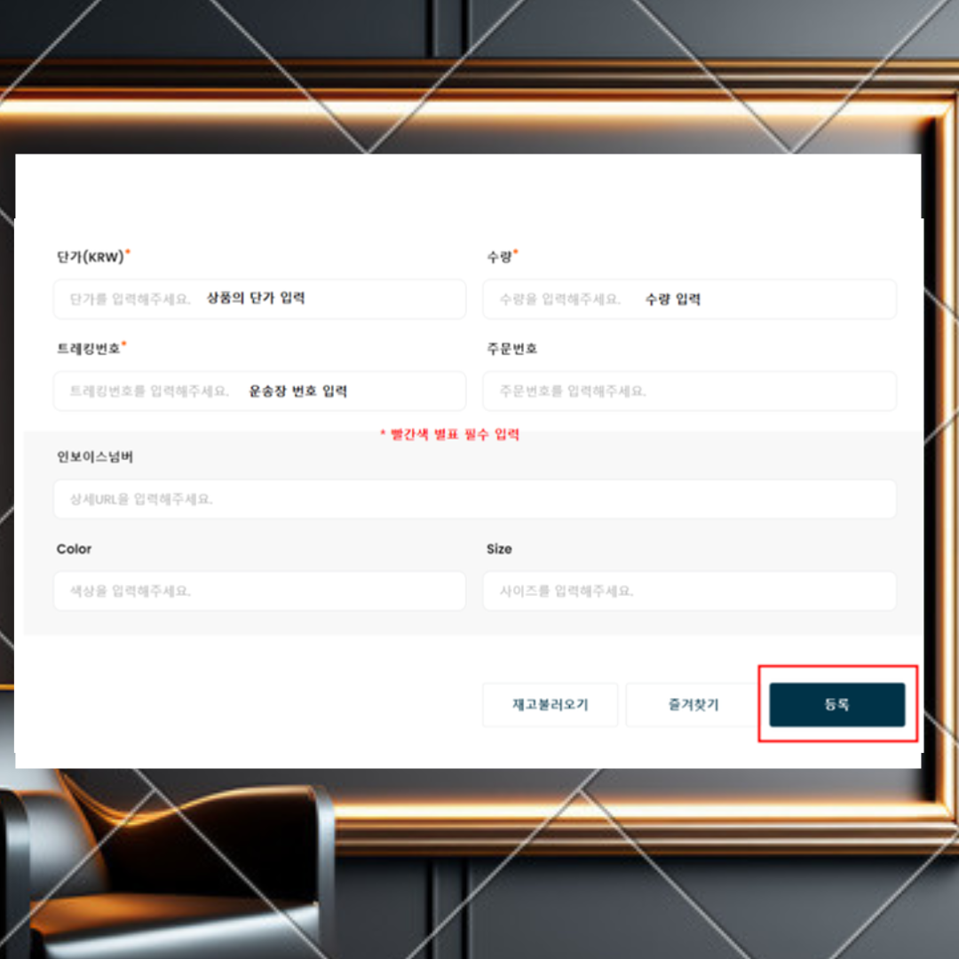 단가와 수량, 트래킹번호(운송장번호) 등의 정보를 입력하고 등록해 주시면 됩니다.