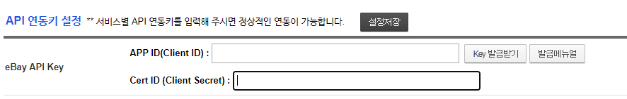 더망고 설정에 들어가 보시면 개인정보 후에 가장 처음으로 보이는 것이 ebay API Key 설정하기입니다.