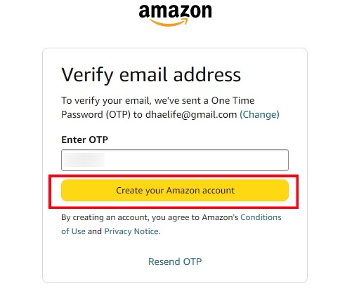 create your amazon account 눌러주면 가입 끝
