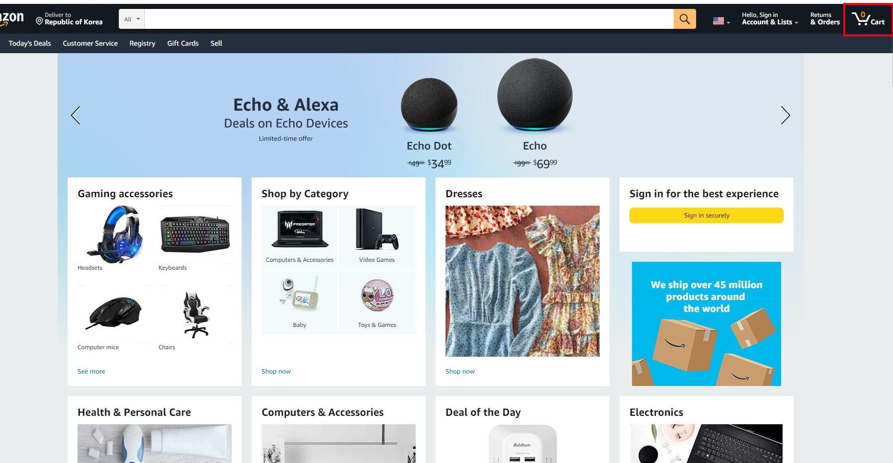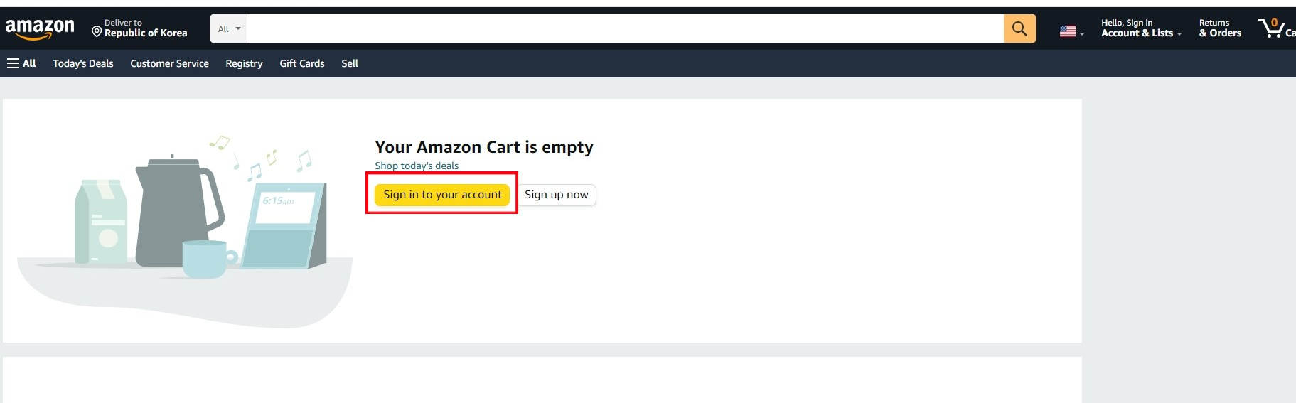 아마존 접속 후 우측 상단 카트를 눌러줍니다.