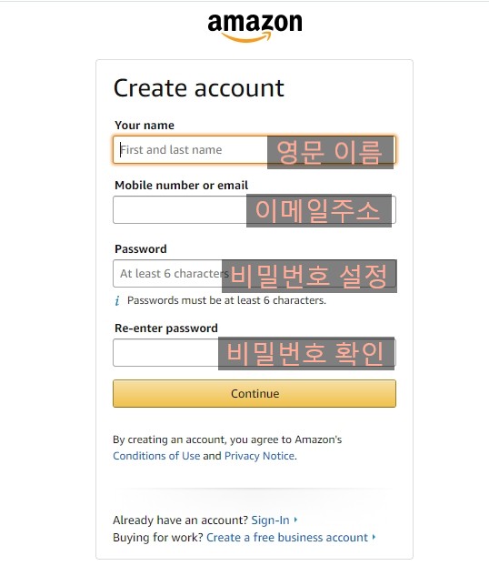 create your amazon account 눌러주면 가입 끝