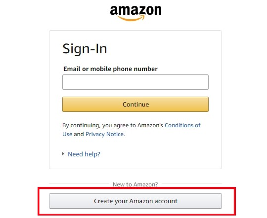 하단에 create your Amazon account 클릭 합니다.