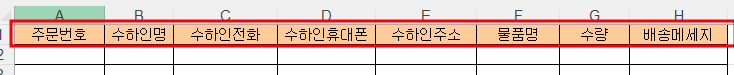(택배사 프로그램마다 대량등록 양식이 다를 수 있으니 확인하고 만들어주시면 됩니다)