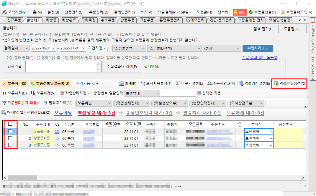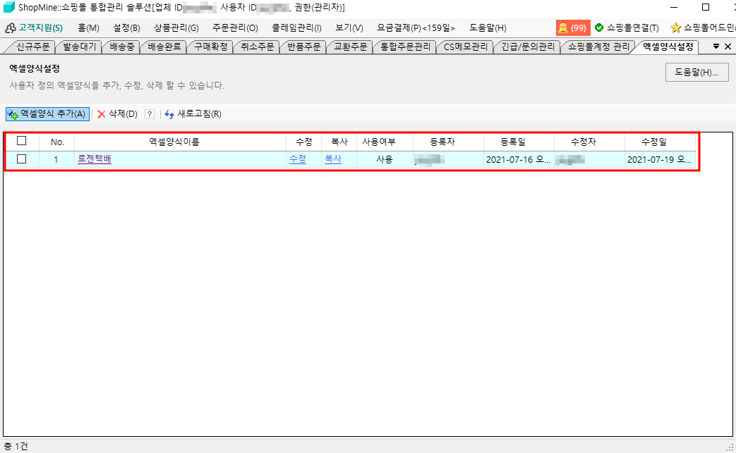그리고 해당 택배사 프로그램에 대량등록하시면 됩니다!