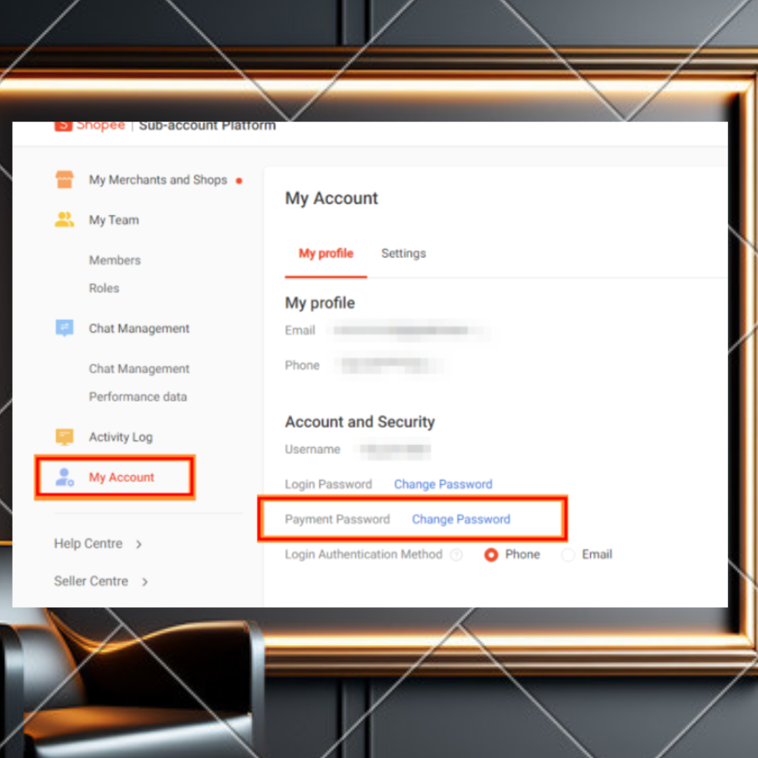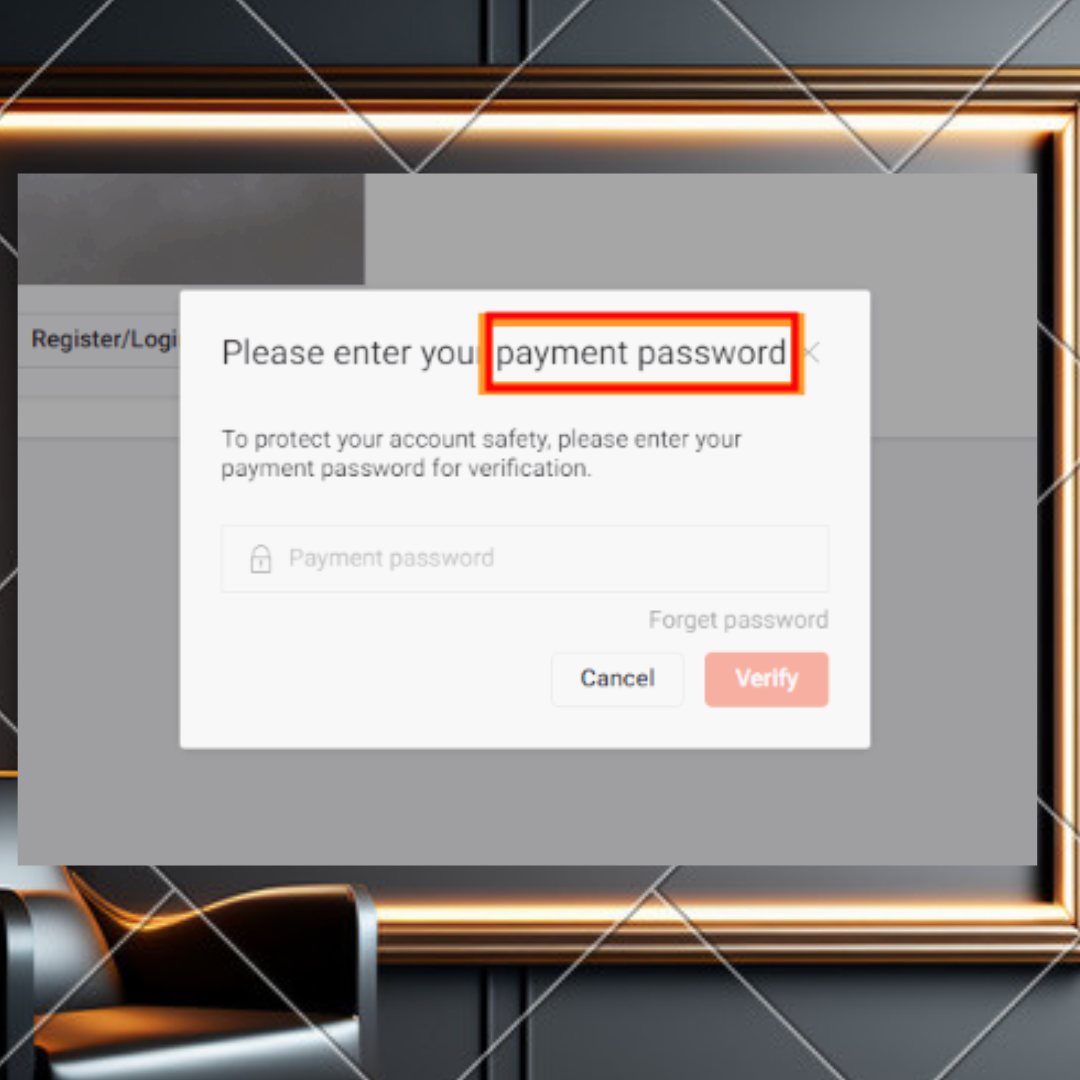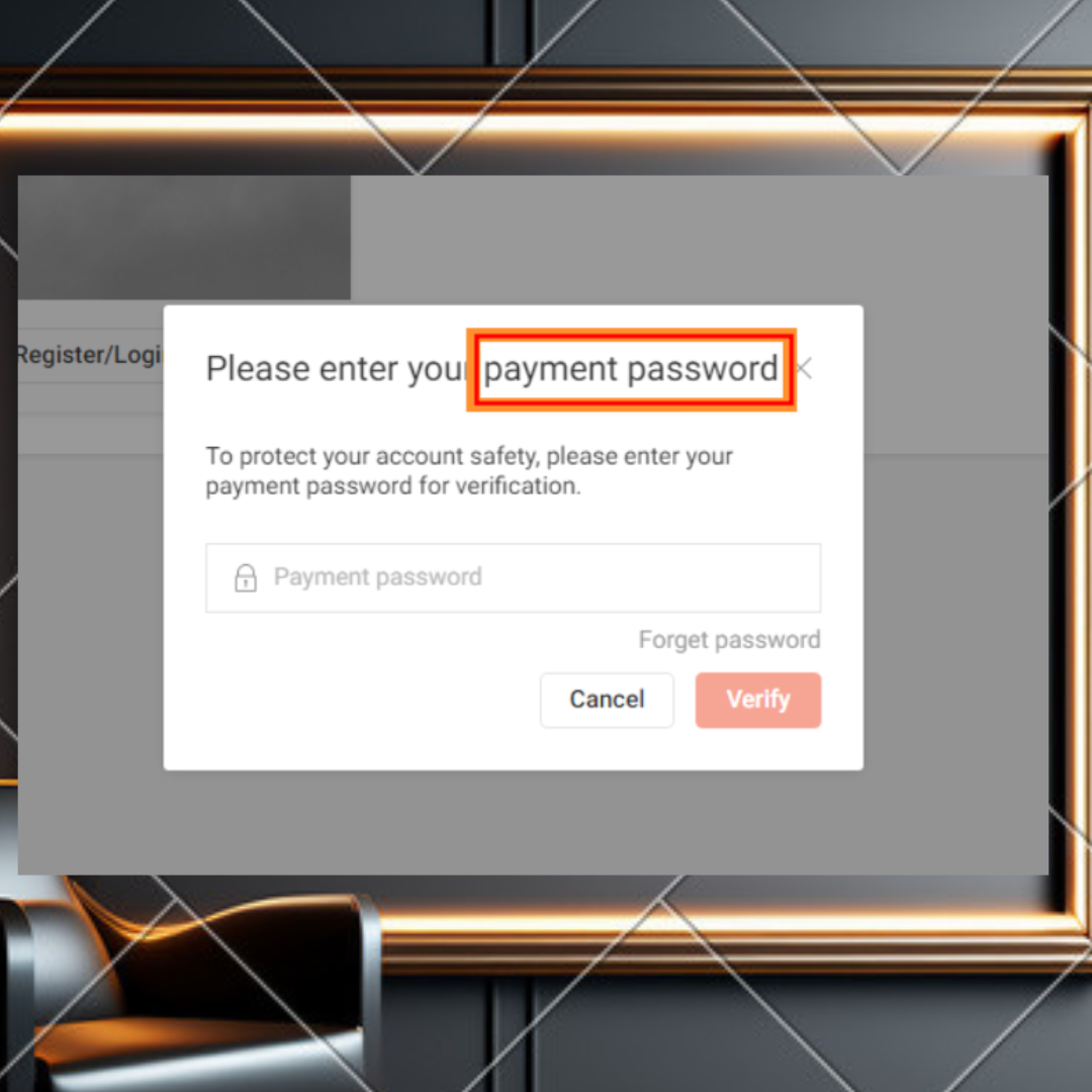 My Account에서 Payment Password를 설정합니다. 기존 비밀번호와는 다른 비밀번호로 해야 합니다.