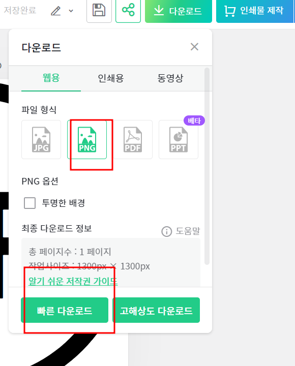 로고는 우측 상단 > 다운로드 버튼을눌러주세요