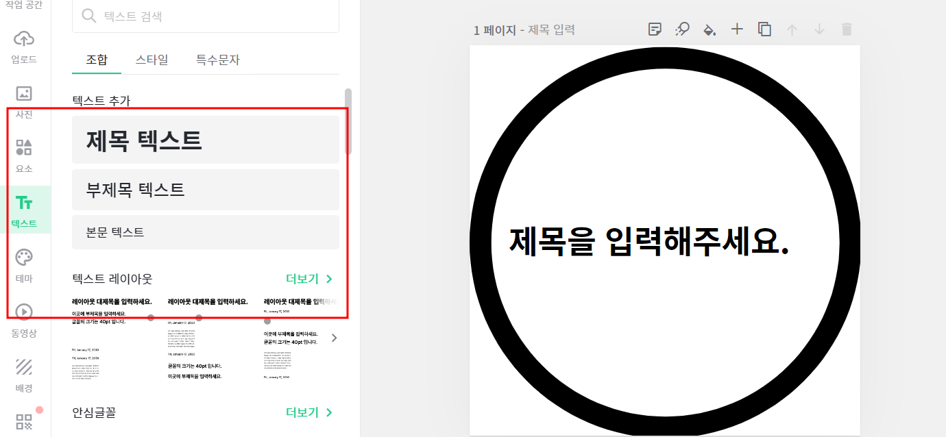 텍스트 > 제목크기에따라 텍스트를 눌러주세요!