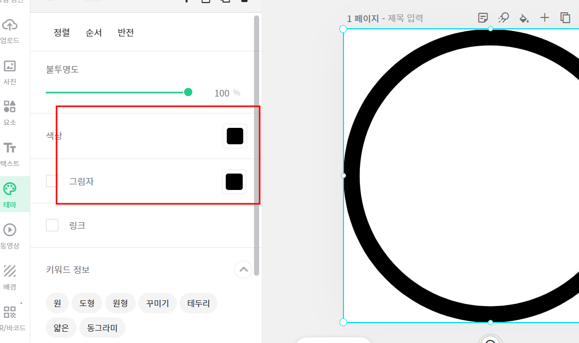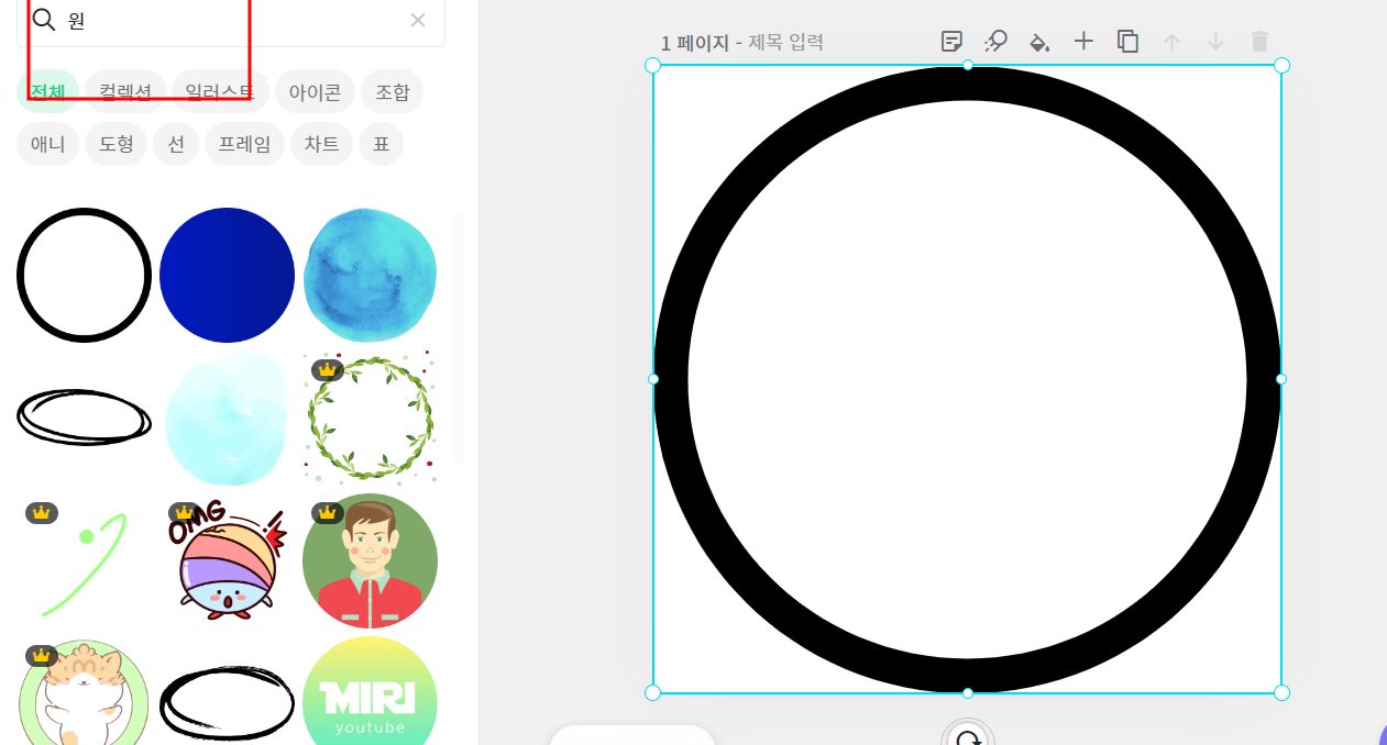 그러면 여러가지 원의 컨텐츠가 나오는데요! 저는그냥 검은색 기본원을 불러와서 , 전체 크기에 맞게 확대를 했습니다.