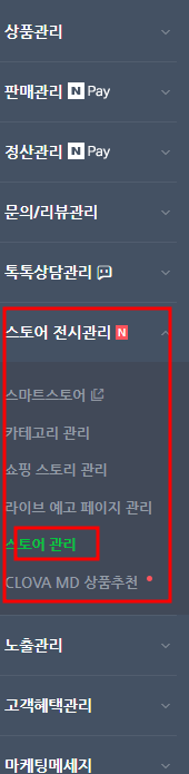 스마트 스토어 판매자센터 > 스토어전시관리 > 스토어관리