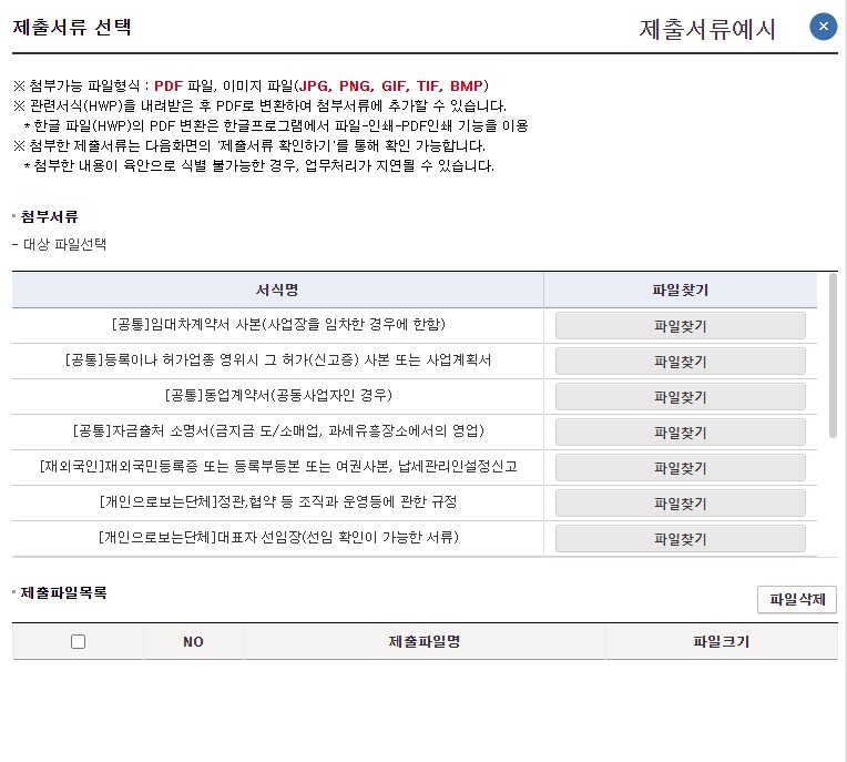 저장 후 다음을 눌러주시면 마지막 단계인 제출서류 선택하는 창이 나옵니다.