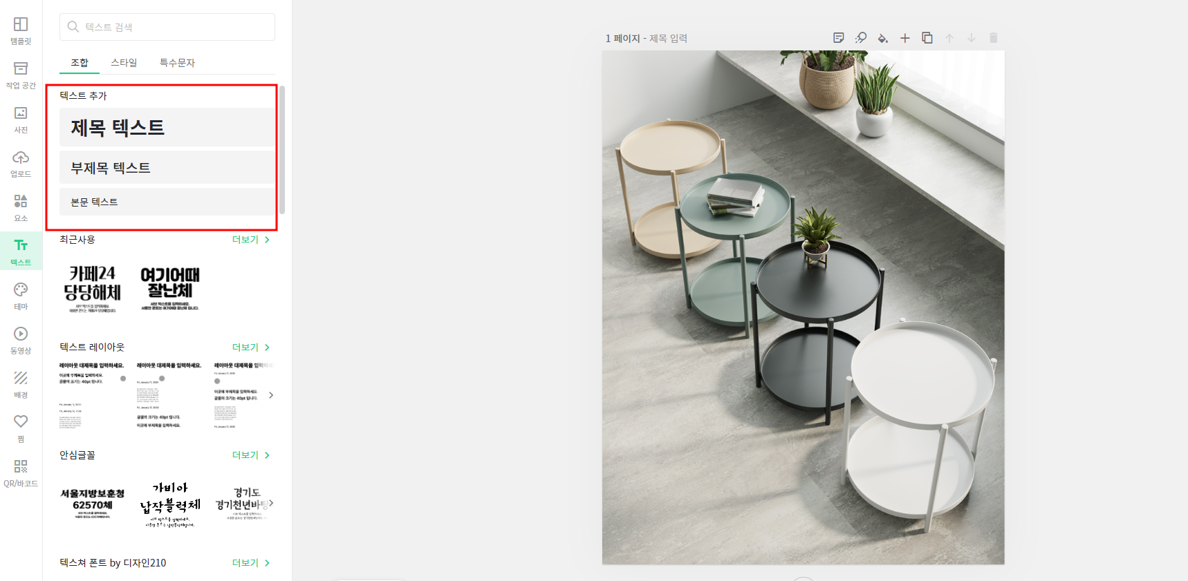 왼쪽 텍스트를 눌러 원하는 글씨체를 선택해줍니다.