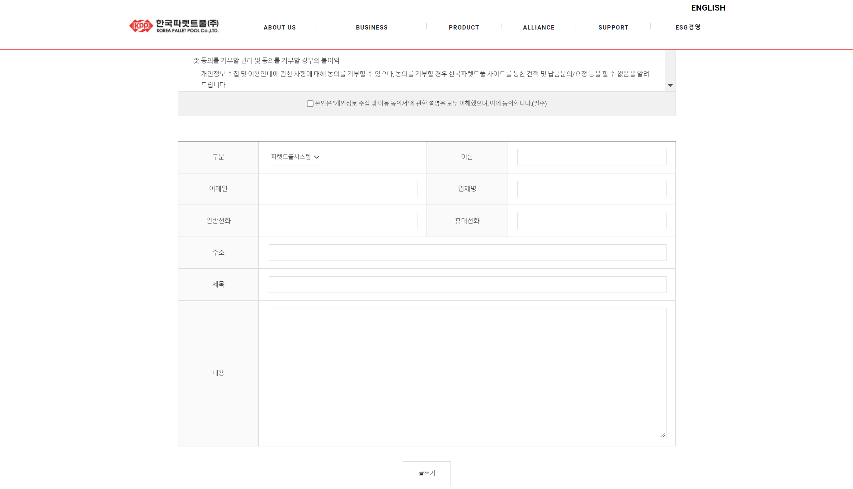 한국 팔레트 검색 > 우측 상단의 SUPPORT > 견적 및 납품문의/요청