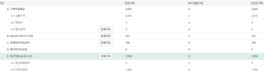 큐텐 서비스 수수료 외 등등 여러 가지 있지만 수수료를 계산해 보니 약 11% 차감이 된 걸 확인할 수 있습니다.
