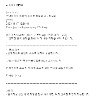 메일을 보내고 회신을 받고 나니 카테고리별 수수료가 다르다는 걸 알게 되었습니다.,