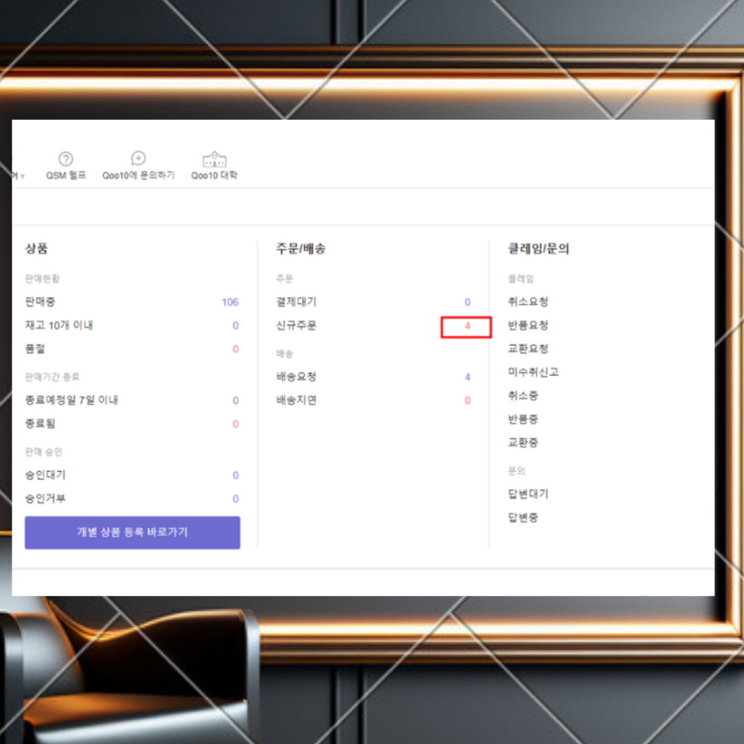 큐텐 재팬에 로그인 후 신규 주문의 숫자를 클릭합니다.