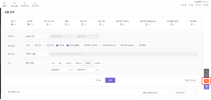 큐텐 qsm 에 로그인하게 되면 우측 하단에 주황백 버튼의 Q&A 버튼을 눌러주세요