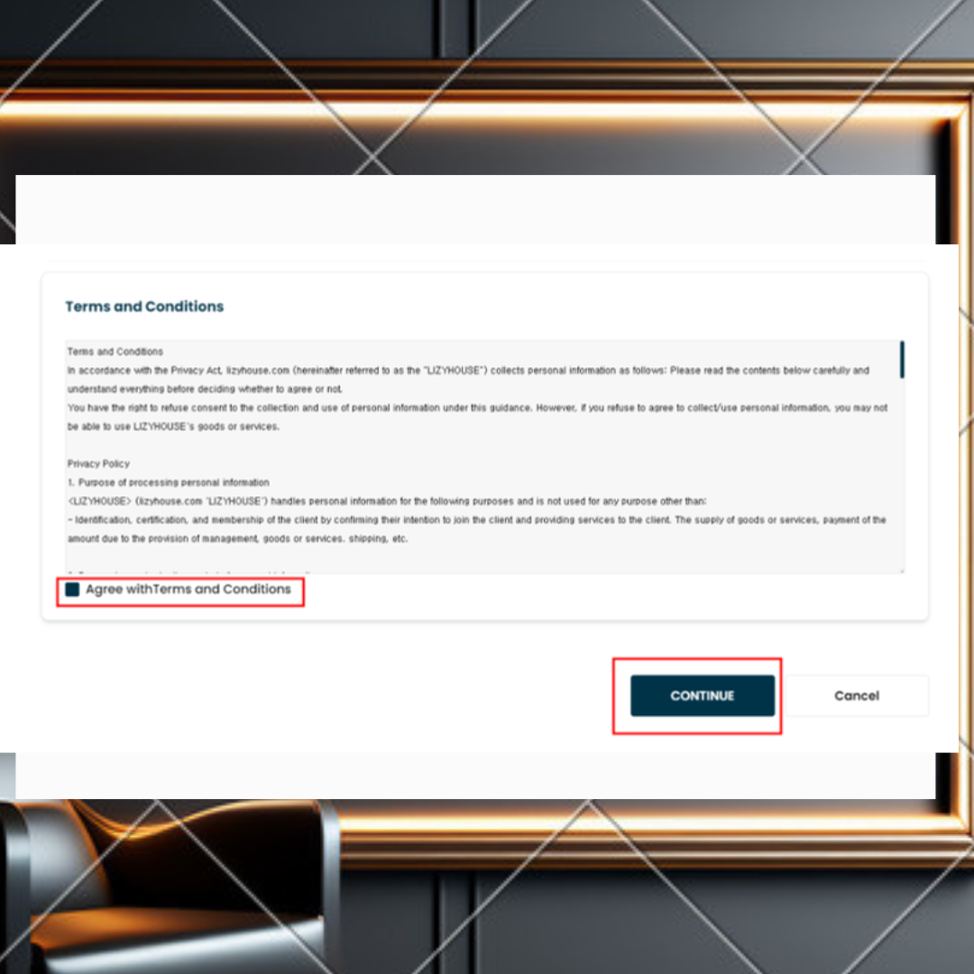 길게 영문으로 가입하겠는지 가입 동의 여부에 Agree 체크 후 Continue 계속 버튼을 클릭합니다. 여기까지 완료되셨다면 가입이 완료되었습니다.
