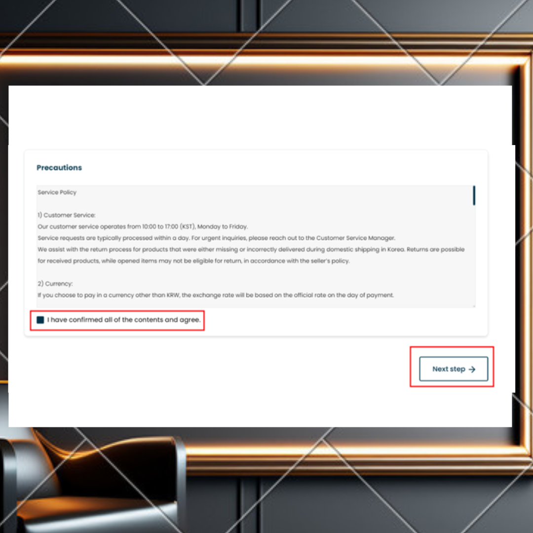 제품 발송 동의 여부에 체크 후 Next step 다음을 클릭합니다.