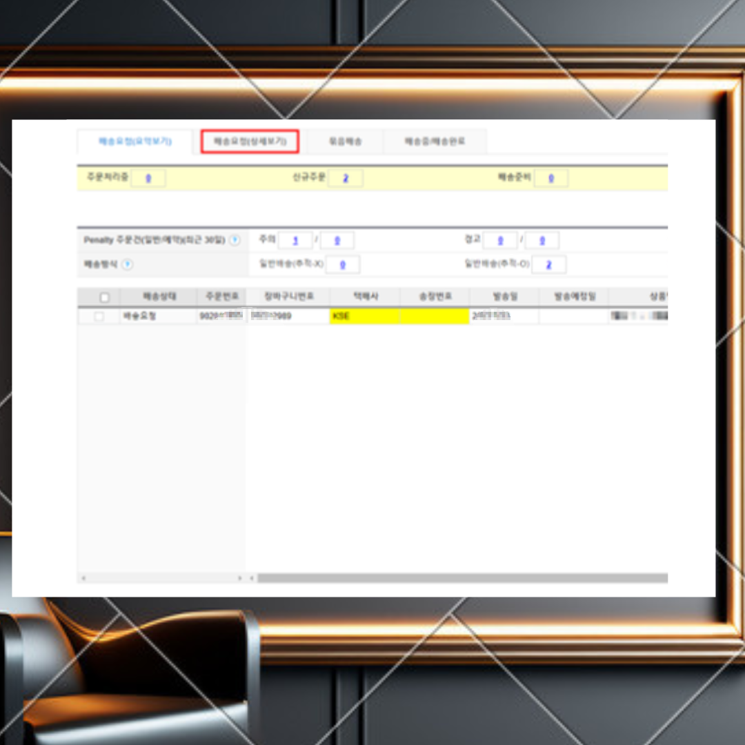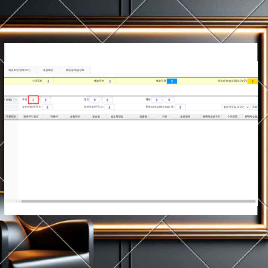 배송요청 탭에서 '주의'에 해당 주문 건을 확인할 수 있었습니다.