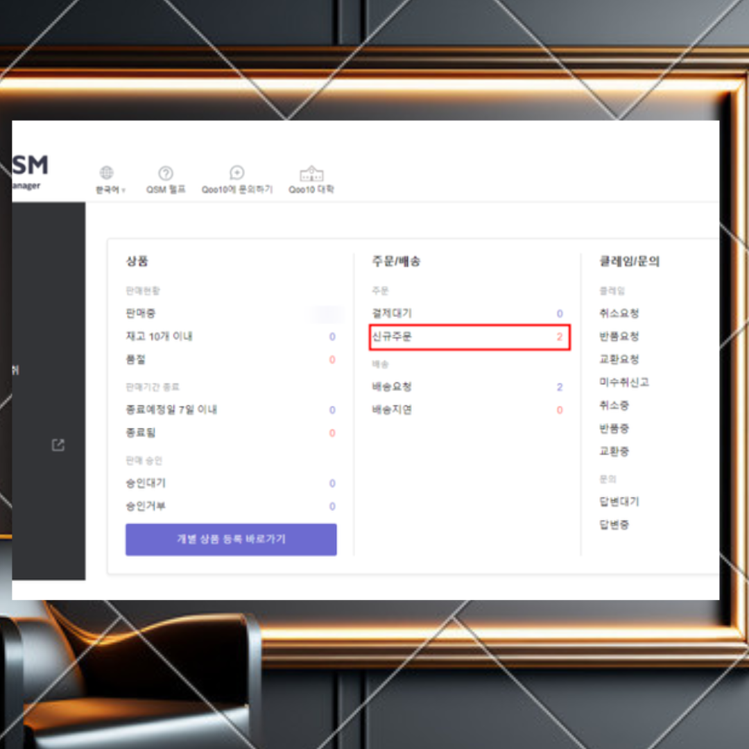 큐텐 재팬 판매 서비스 평가에서 주문이행 주의로 확인되어 고객에게 쪽지를 보내보려고 합니다. 신규 주문 탭에서 주문 건을 확인해 보겠습니다.