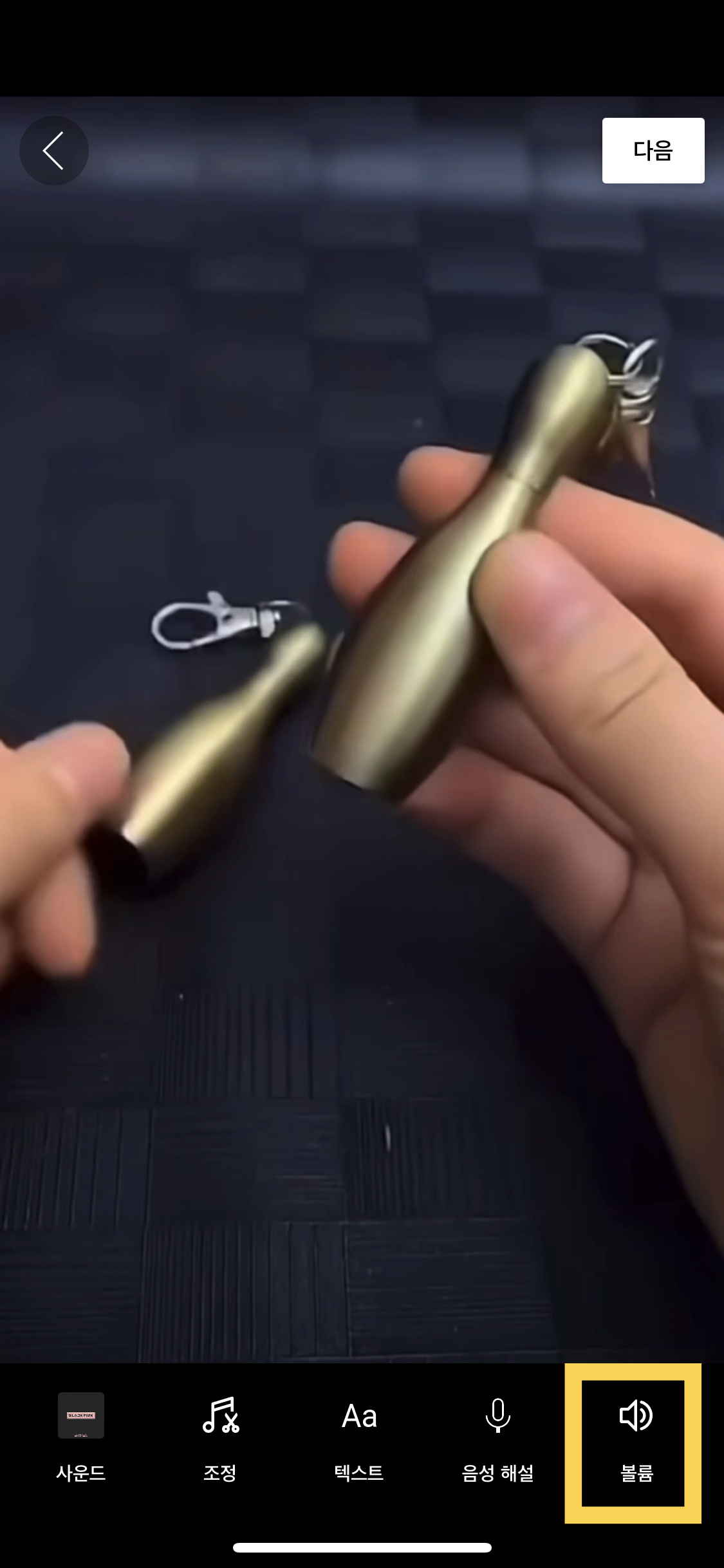 - 하단 볼륨 설정< 원본 사운드 및 내가 선택한 사운드 볼륨 조절
