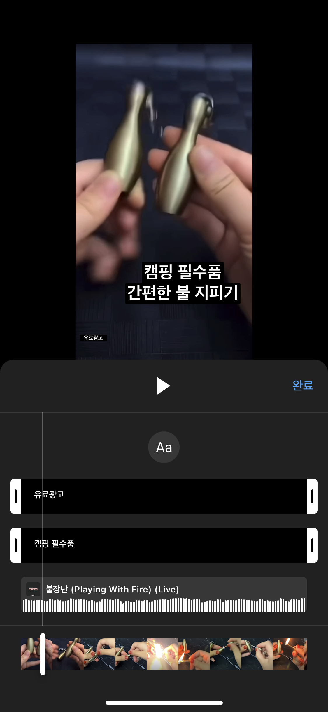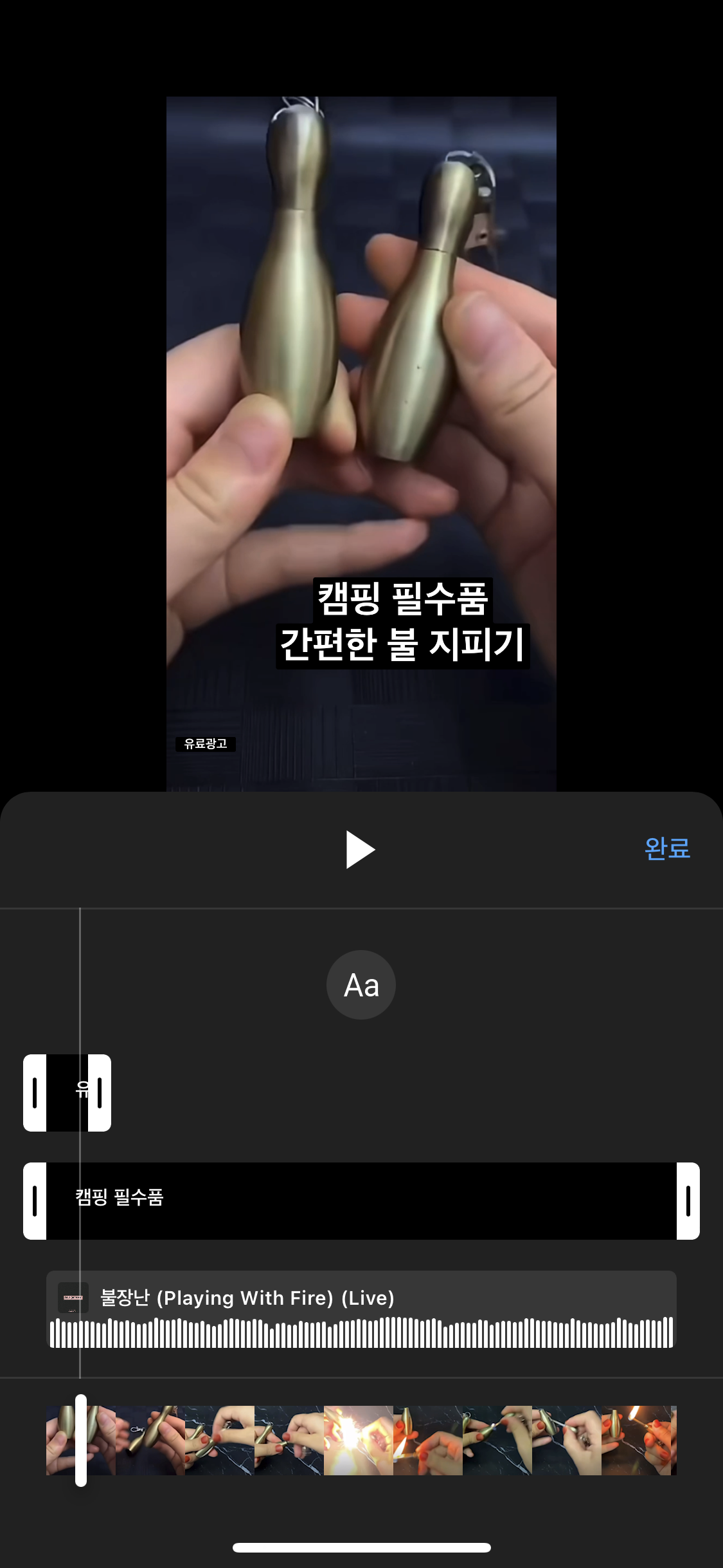 저는 부싯돌 동영상 이기 때문에 불과 관련된 노래인 불장난을 선택하겠습니다.