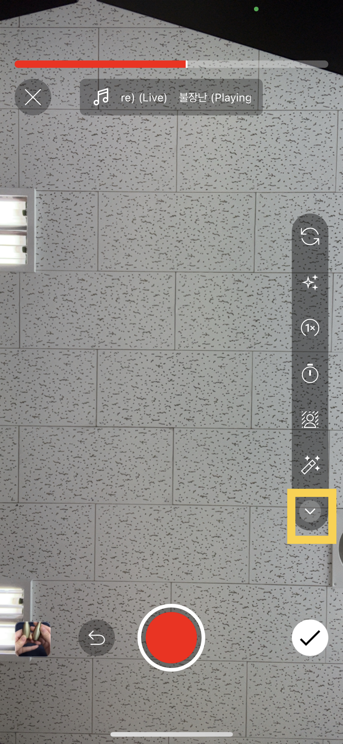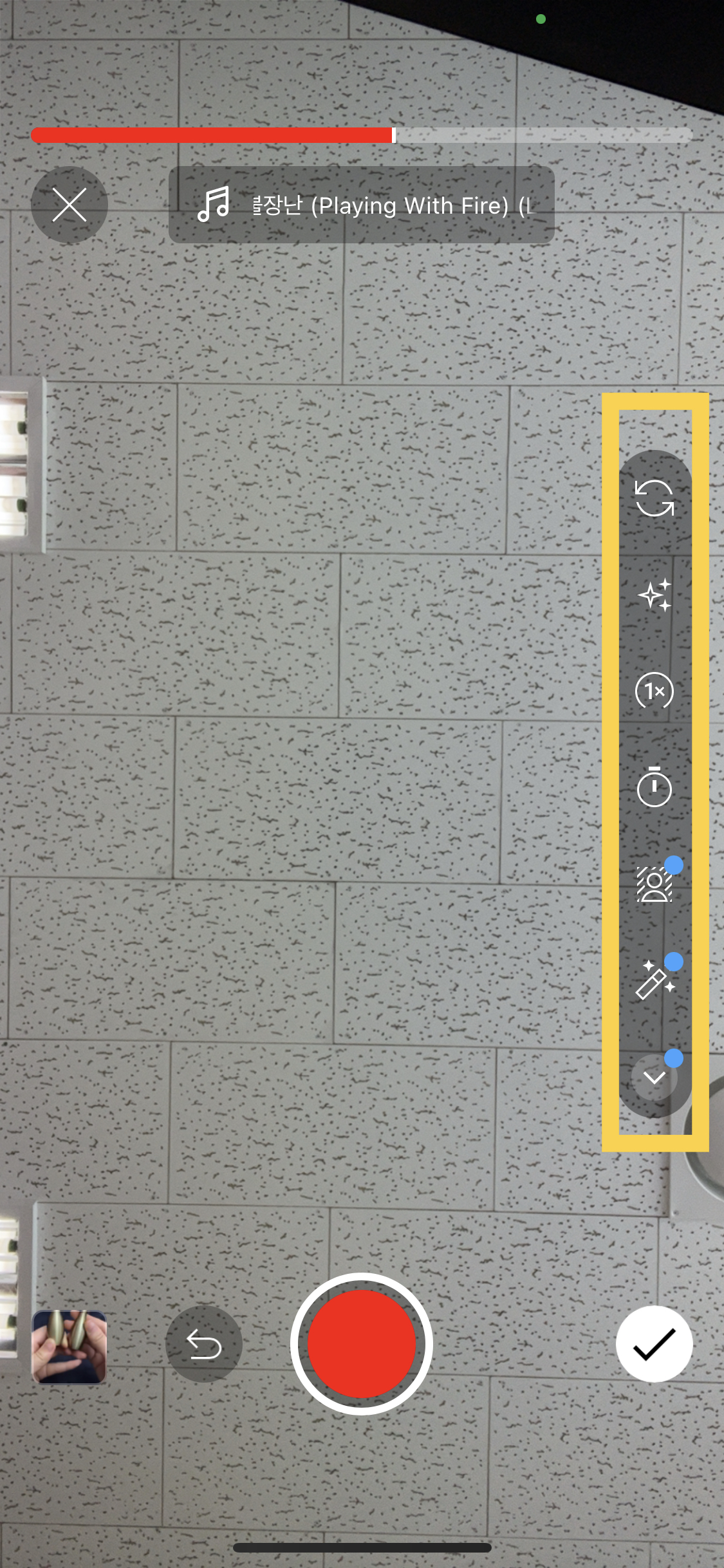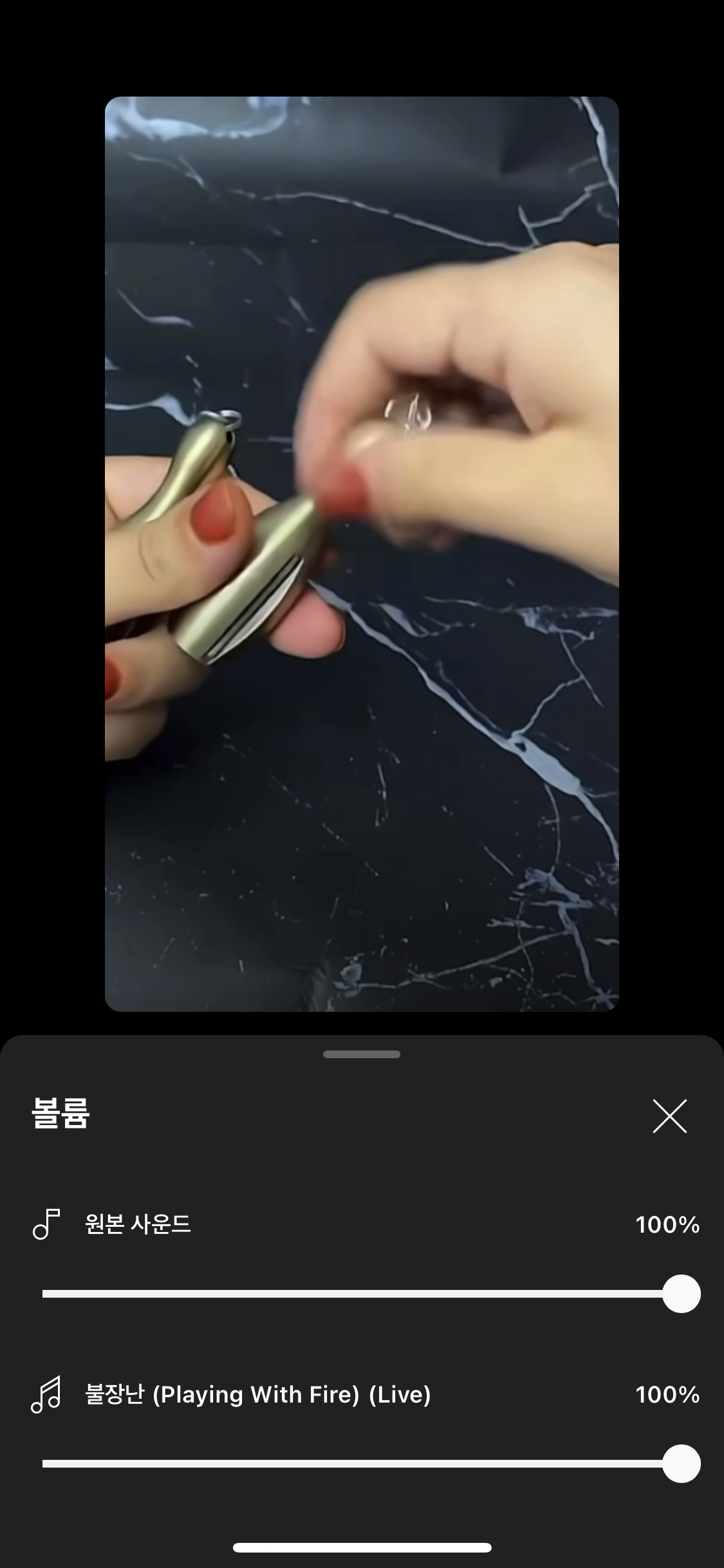 그런 경우 하단 볼륨을 터치 후 원본 사운드 및 내가 선택한 사운드의 볼륨을 조절할 수 있어요.