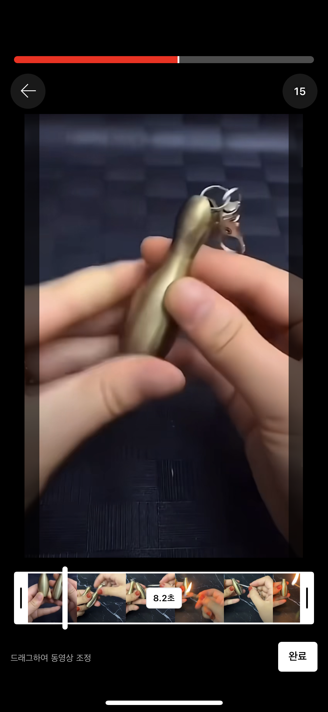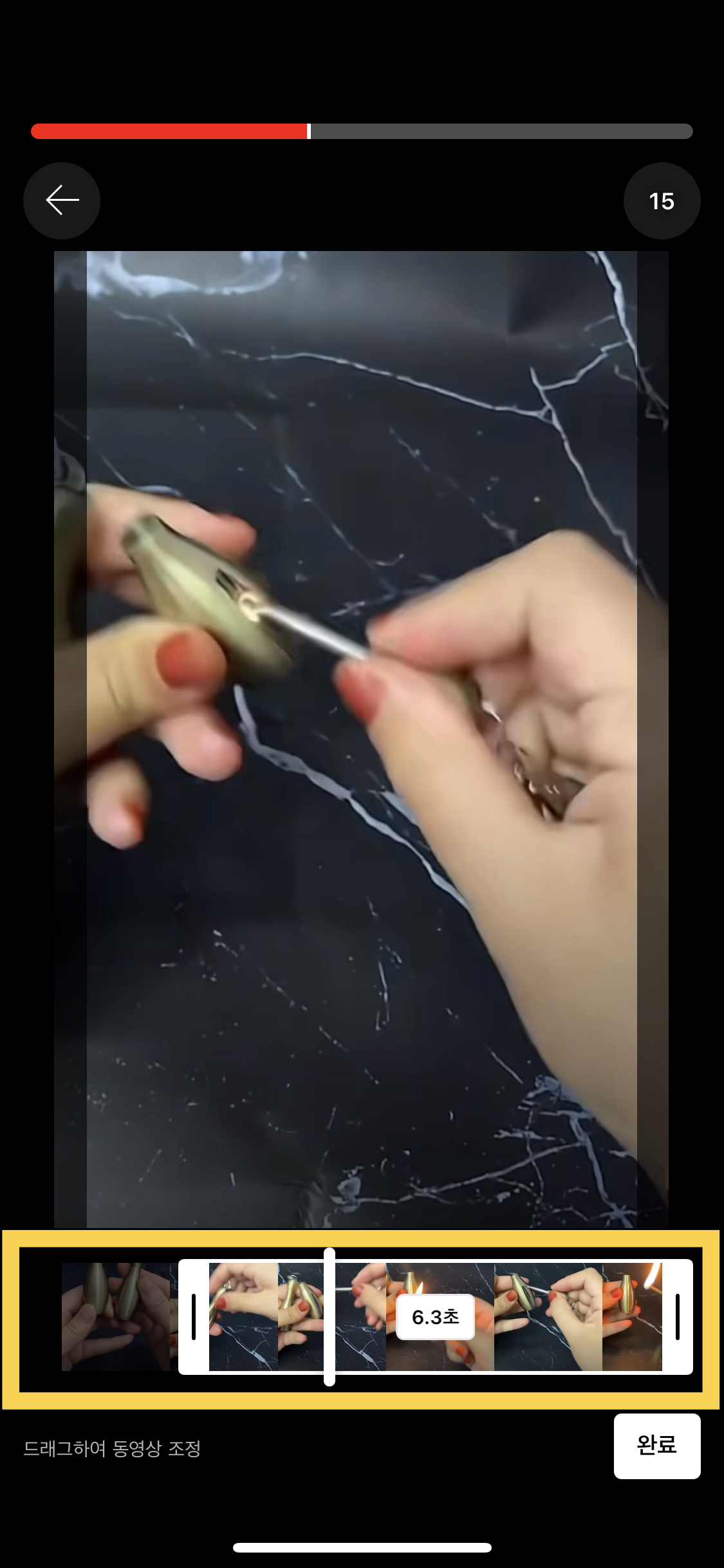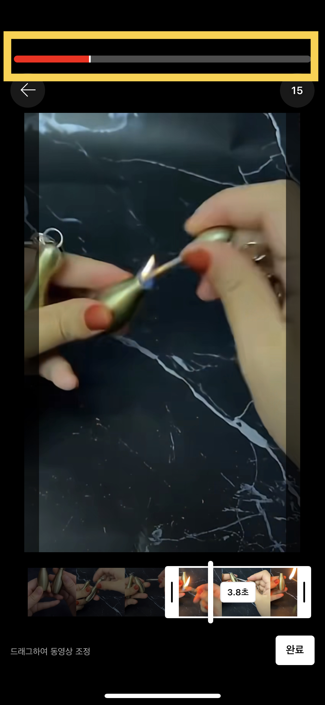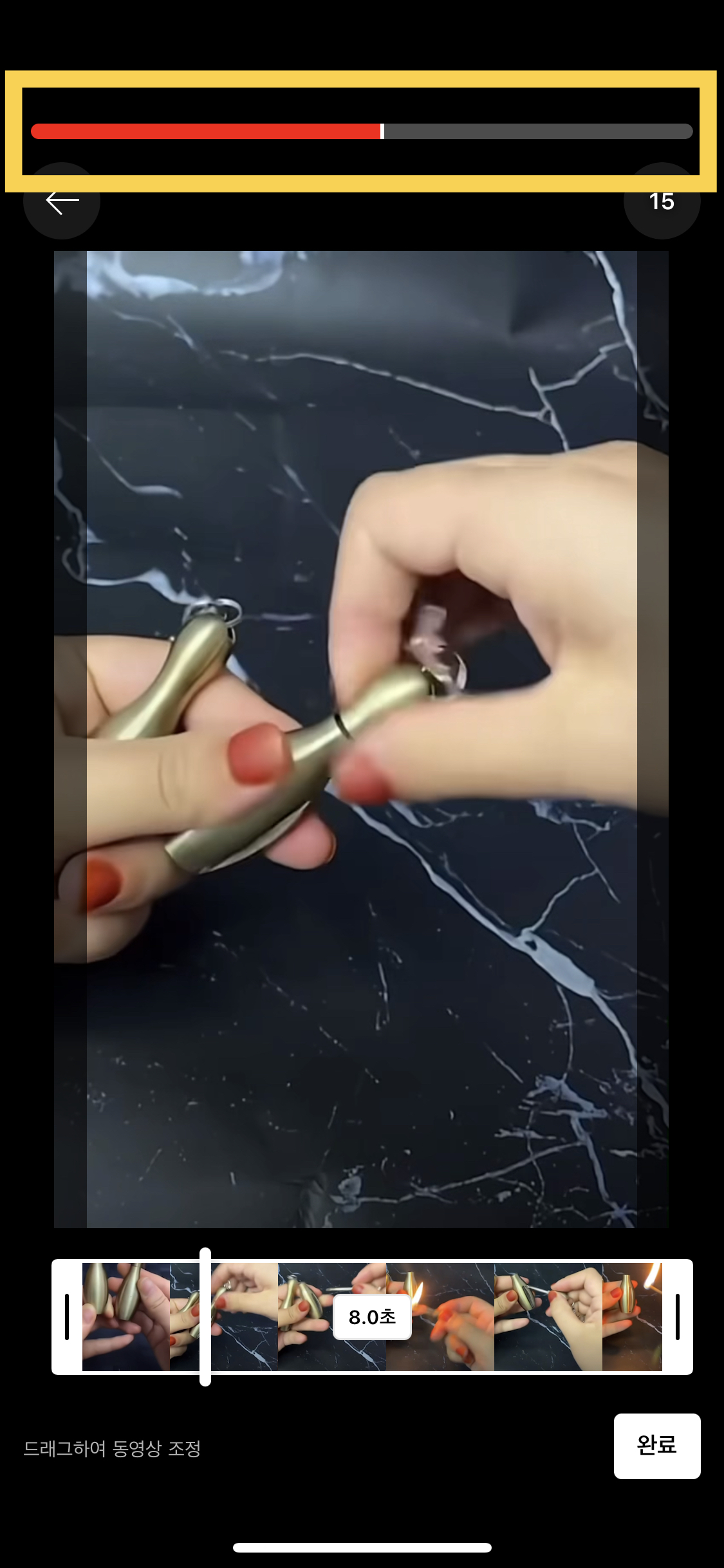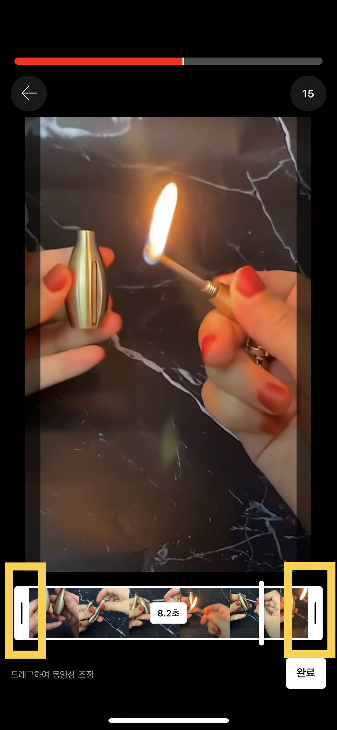 노란색 박스 부분을 좌우로 움직이면 동영상의 처음과 끝을 조정할 수 있어요.