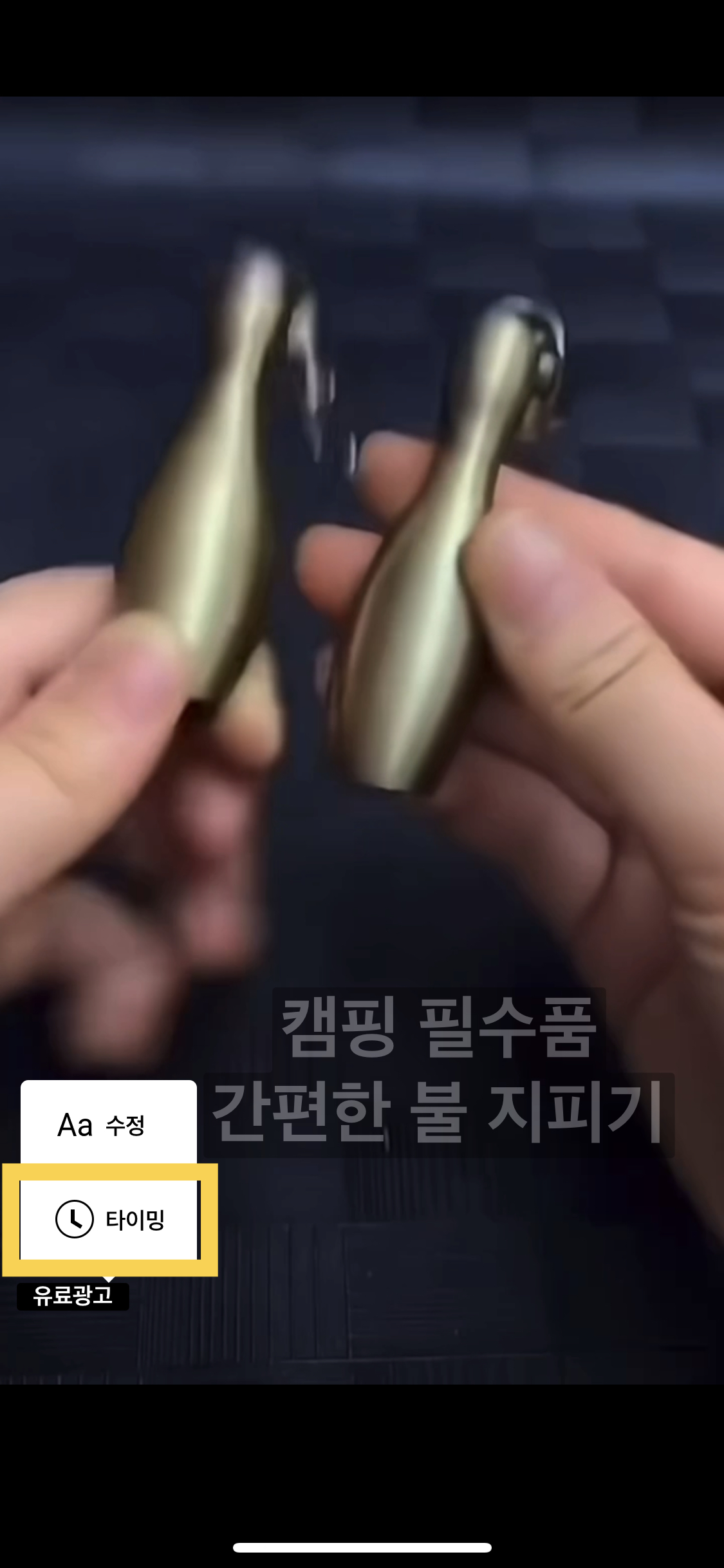 유료광고 글씨를 꾹 누르게 되면 수정 / 타이밍 이라고 나오는데