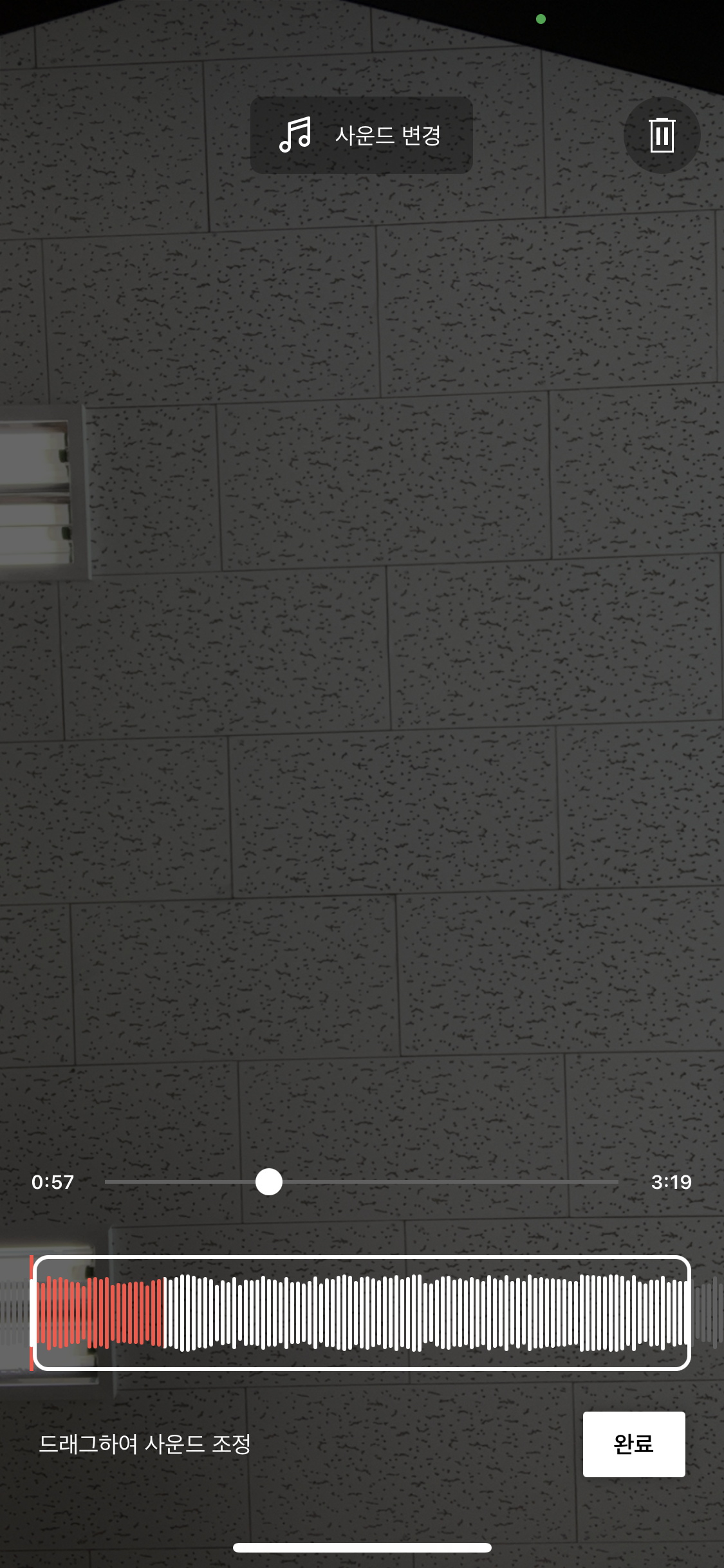 앞에 말씀 드렸던 동영상 편집과 마찬가지로 흰 박스를 좌우로 움직여 원하는 부분부터 음악이 재생되게 해줍니다.