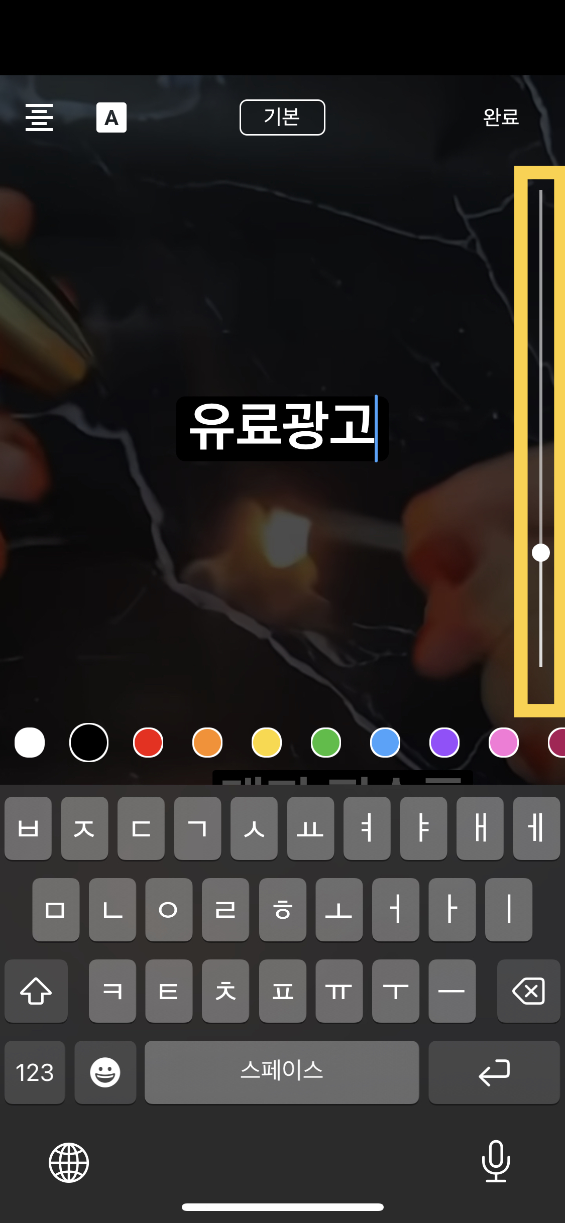 유료광고 문구 입력하시고 우측 바를 상하로 내리면 글씨 크기를 줄일 수 있어요!!