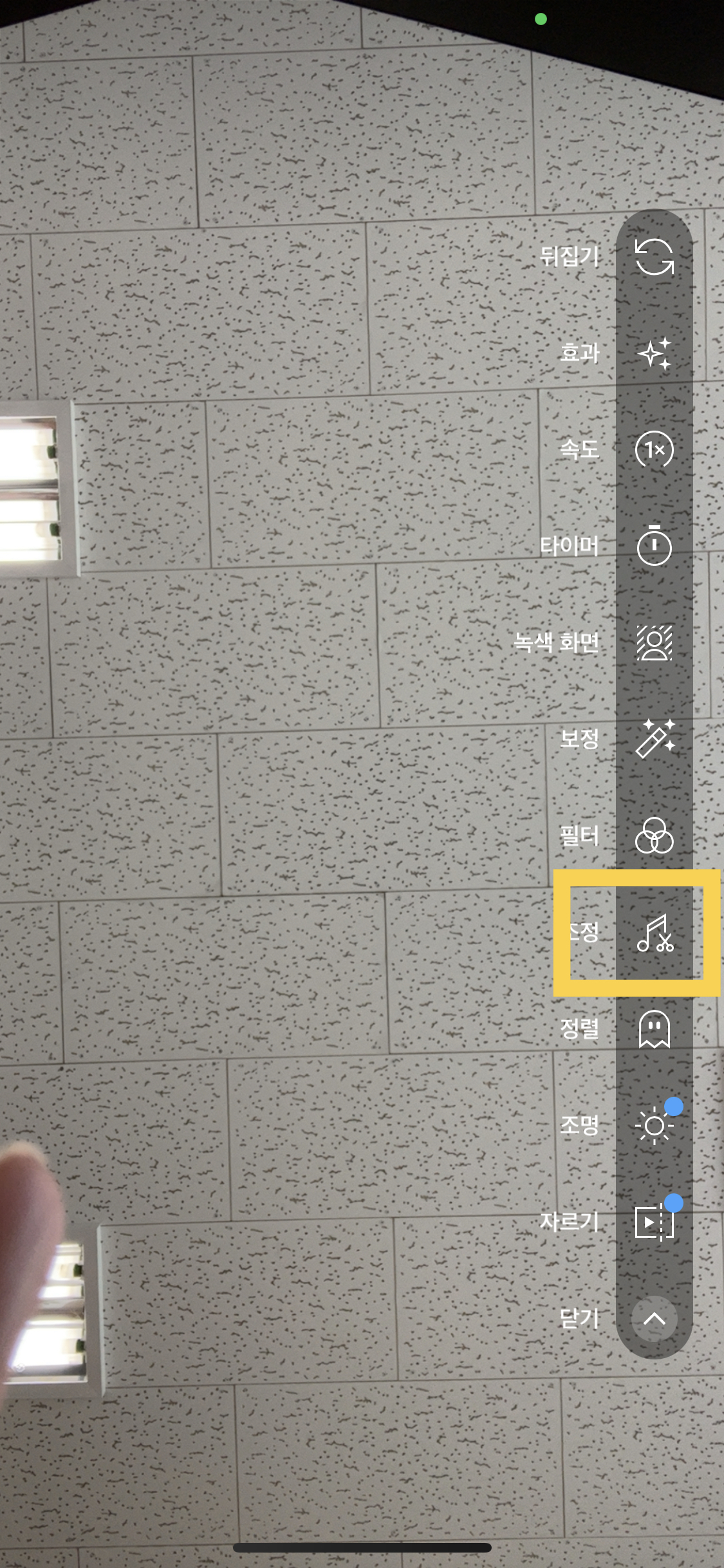 우측 옵션 바 아래 화살표를 누르게 되면 노래&가위 모양 아이콘을 터치해줍니다.