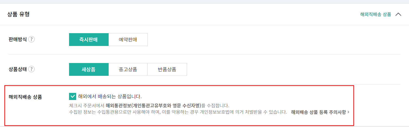 상품 유형 < 해외직배송 상품 체크
