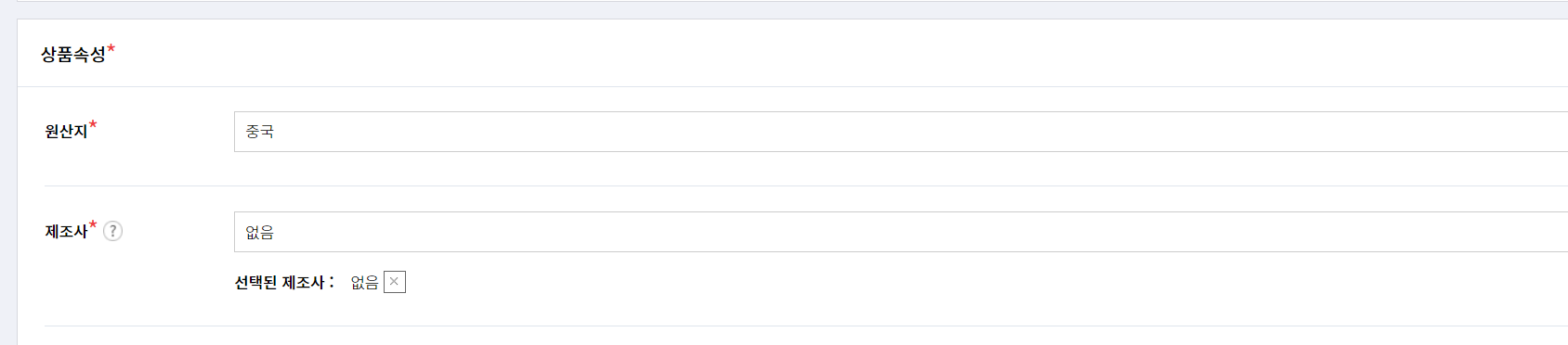 원산지 중국 < 제조사 입력