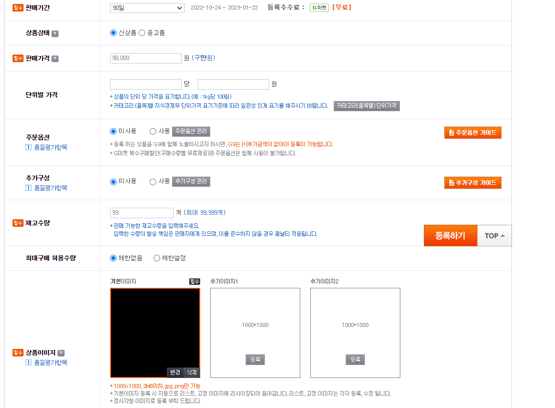 판매기간 최대 90일 선택