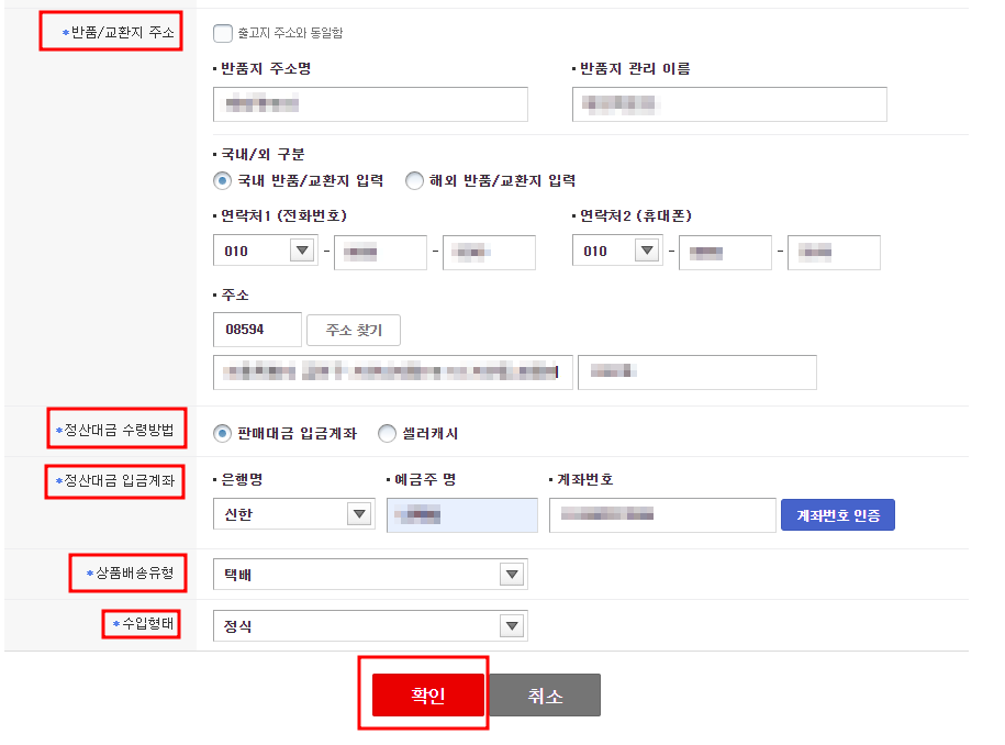하나하나씩 확인해가면서 정보 입력하시면 됩니다.