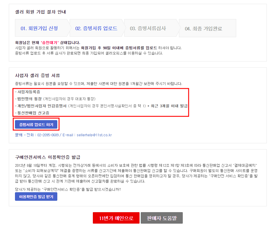 필요한 서류는 사업자등록증, 통장사본, 인감증명서(3개월 이내 발급), 통신판매업 신고증