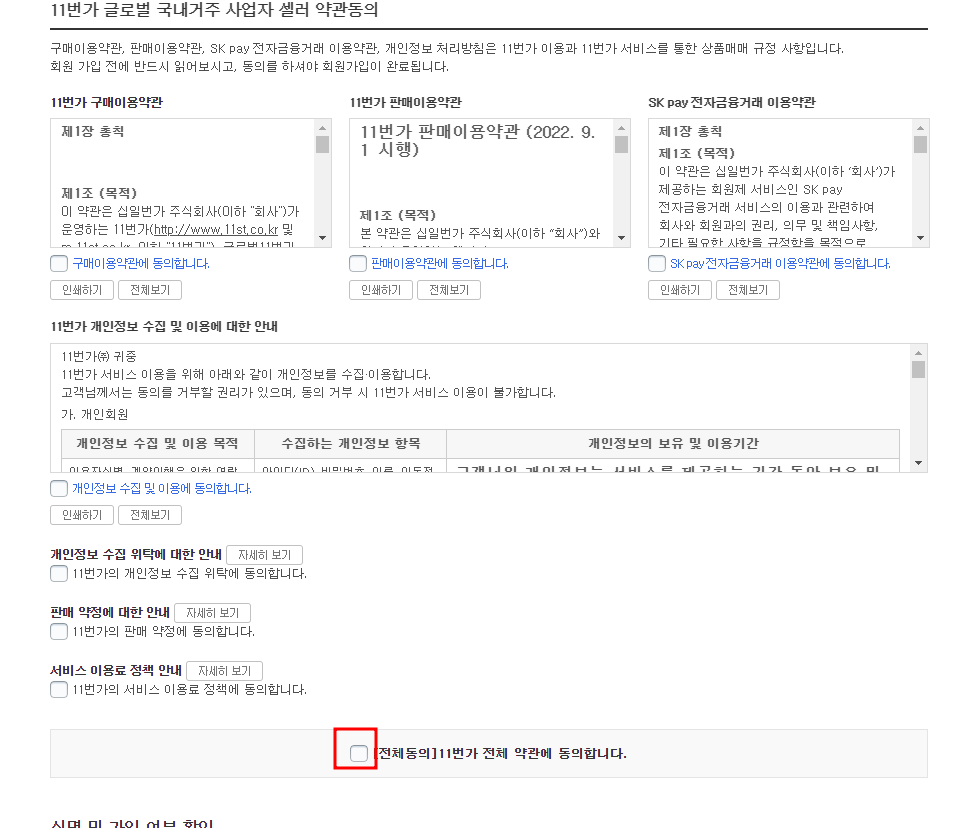 11번가 해외구매대행을 위한 글로벌셀러 가입 또는 전환하기