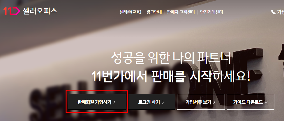 위 11번가 셀러오피스 링크 들어가시면 판매회원 가입이라고 있습니다. 그거 클릭하시면 됩니다.