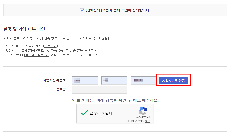 일일이 하나씩 다 체크하실 필요 없습니다. 그냥 전체동의 하나만 클릭해주세요.