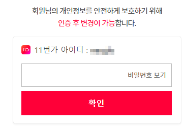 개인정보 안전을 보호하기 위해 비밀번호를 한번 더 입력하셔야 됩니다.